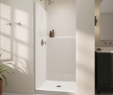 - Flat walls to easily accommodate future grab bar