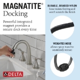 - MagnaTite Docking uses a powerful integrated magnet to snap your faucet spray wand precisely into place keeping it docked when not in use