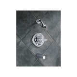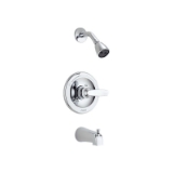 - Pull-up tub spout diverts water from the tub spout to shower head