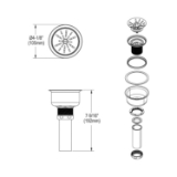 - Conical strainer basket with metal stem and rubber seal.