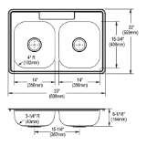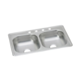 Elkay® K233223 Dayton® Kitchen Sink, Satin, Rectangle Shape, 14 in Left, 14 in Right L x 15-3/4 in Left, 15-3/4 in Right W x 5-7/8 in Left, 5-7/8 in Right D Bowl, 3 Faucet Holes, 33 in L x 22 in W x 6-1/16 in H, Top Mount, Stainless Steel