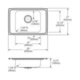 - CABINET SIZE: Minimum cabinet size for this sink is 30 in