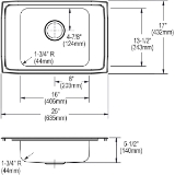 Elkay® DRKAD2517552 Lustertone™ Classic Classroom Sink, Rectangle Shape, 17 in W x 5-1/2 in H, Top Mounting, 304 Stainless Steel