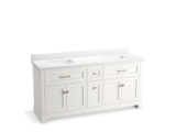 - Convenient tilt-down drawer under each basin for storing smaller, frequently-used items