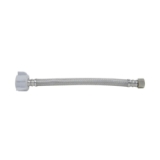 - Braided stainless steel with PVC inner tubing, stainless steel ferrule, chrome plated nut and rubber seal