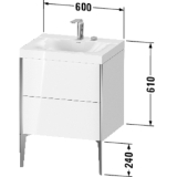 DURAVIT XV4709NB218P XViu C-Bonded Rectangle Furniture Washbasin With Vanity Unit, 23-1/4 in OAH x 23-5/8 in OAW x 19 in OAD, Floor Standing Mount, White Matte