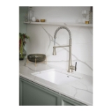 - Faucet pulldown hose offers flexible water delivery and hose retracts with ease