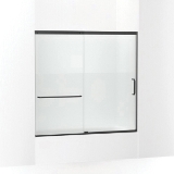 - Shower door configuration consists of one sliding panel and one stationary panel
