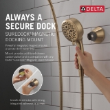 - SureDock Magnetic Hand Showers dock securely with MagnaTite Docking